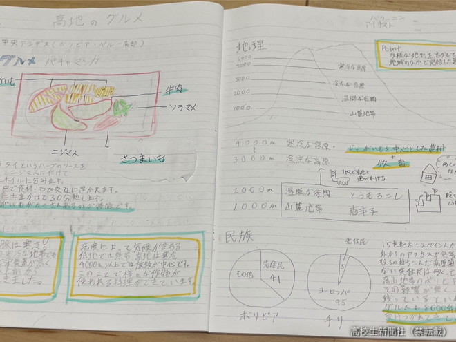 古文で出てきた人物や関係性を絵に描いて、状況を理解しやすいようにしています。絵にすることで親近感が湧き、話に入り込めます。知らない単語が多いと慣れるまでは大変ですが、徐々にこの単語は役職なのか、人物名なのかが分かり、古文への抵抗感がなくなりました。(ティアラ=2年)