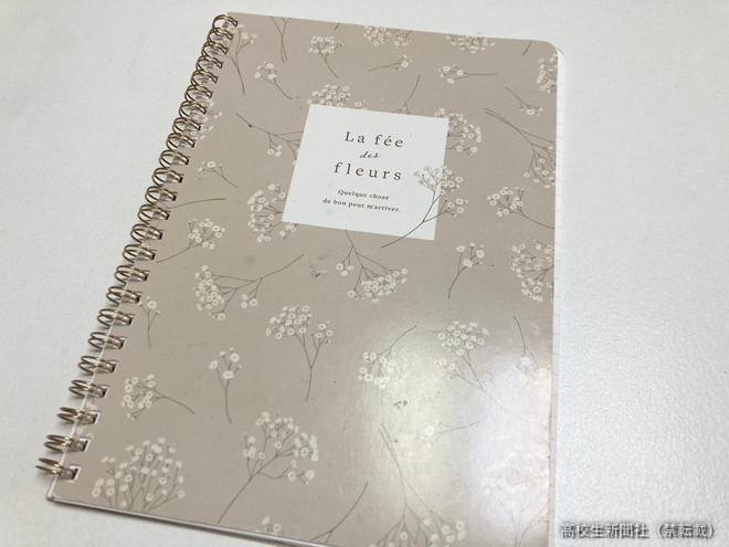 とにかく書き心地がよくて、勉強が楽しくなります。インク乗りも良く、かすれません。触り心地もよく、するするとした手触りが特徴的です。表紙は高級感があるデザインで、見ていてちょっとうれしくなります。適度な分厚さなので、リュックサックの中に入れてもかさばりにくく、持ち運びにも便利です。(藤咲花佳=2年)