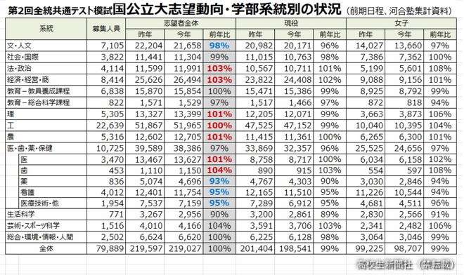 文・人文は98%と微減だった。「女子の受験生が多い系統です。ここ数年、女子は顕著に減っています」