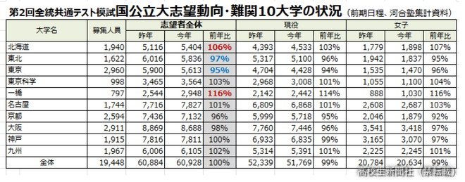 一方で、北海道大学106%、九州大学102%など、エリア内の最難関を目指す動きもある。「東大は日本のトップ。地方の優秀な受験生が、東大受験を避けて旧帝大を狙う動きが出ているようです」
