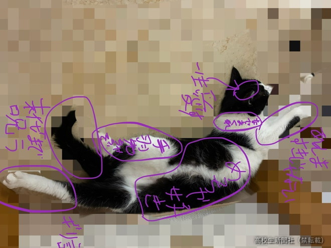 「おさわりマップ」がXなどSNSで流行しています。飼い猫の「さわってほしい場所」や「NGな場所」を、写真に書き込んで紹介するものです。