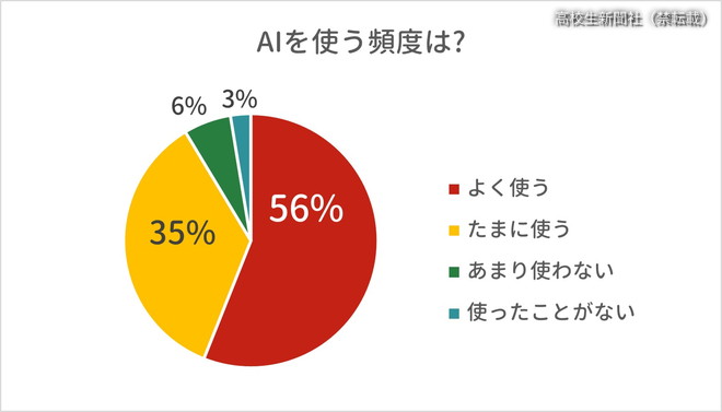 普段AIをどのくらい使うか尋ねると、56%が「よく使う」と回答した。