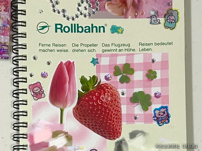 手帳の表紙にはラインストーンやキャラクターのシールをちりばめた。手帳は日記も兼ねていて、デコることで継続できているという。「前に買った日記帳はシンプルなデザインで、飽き性な性格もあり三日坊主で終わってしまいました。自分でデコったものだと、『使いたい!』という気持ちが大きくなり、もう2カ月くらい週5で書き続けられています」