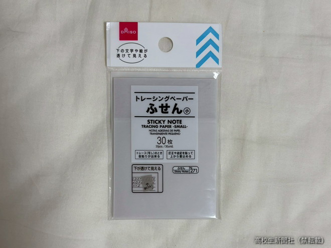 トレーシングペーパー素材のふせんです。下の文字や絵が透けて見えるため、教科書の図や表を写す際に便利です。教科書に書き込みたい時も、教科書を汚さずに上から書けます。勉強効率がグッと上がる商品です。