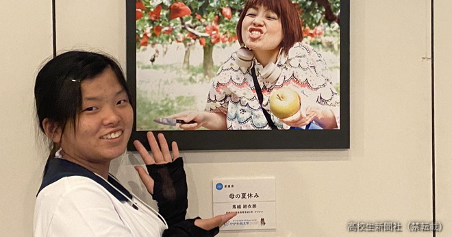 馬越結衣那さん(愛媛・西条高校2年)は、「なにげない一瞬」をとらえることをモットーに写真作品作りに力を入れています。全力で変顔をする母を撮影した作品「母の夏休み」は、文化部の全国大会「第49回全国高校総合文化祭(かがわ総文祭2025)」の写真部門に出品されました。