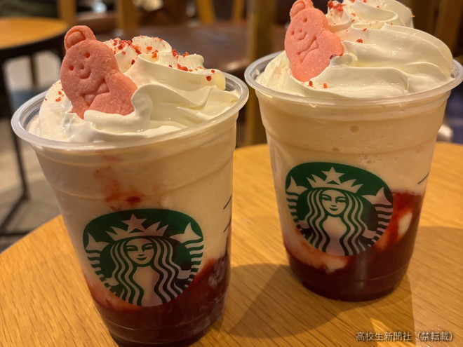 スタバ新作フラペはイチゴ×ティー「ランダムのクッキートッピングがかわいい♡」